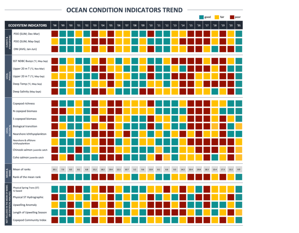 NOAA Fisheries is reporting promising news for juvenile salmon – good ocean conditions existed off the West Coast of Oregon and Washington during 2021.