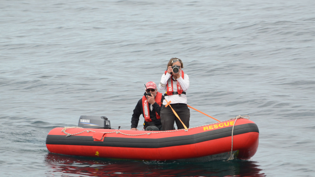 Above photo: Leigh Torres, researcher in Oregon State University’s Marine Mammal Institute and Oregon Sea Grant Extension marine mammals specialist, takes photos of a whale during the whale entanglement project.